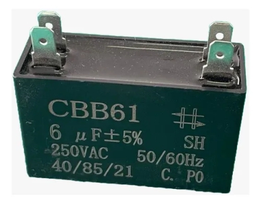 CAPACITOR DE PARTIDA CBB61 6uF 250V 4 PINOS FASTON