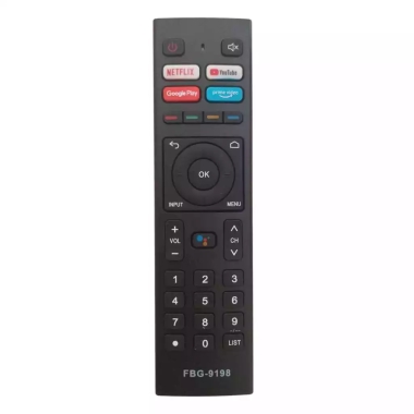 Controle remoto para TV da marca HQ Konka Smart, com as teclas Youtube, Netflix, Prime Video e Google Play.