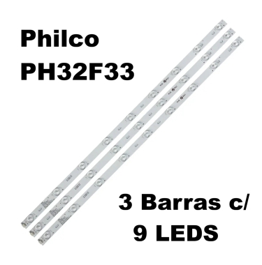 Kit de reposição para TV de led Philco modelo PH32F33G, composto por 3 barras com 9 LEDS cada.