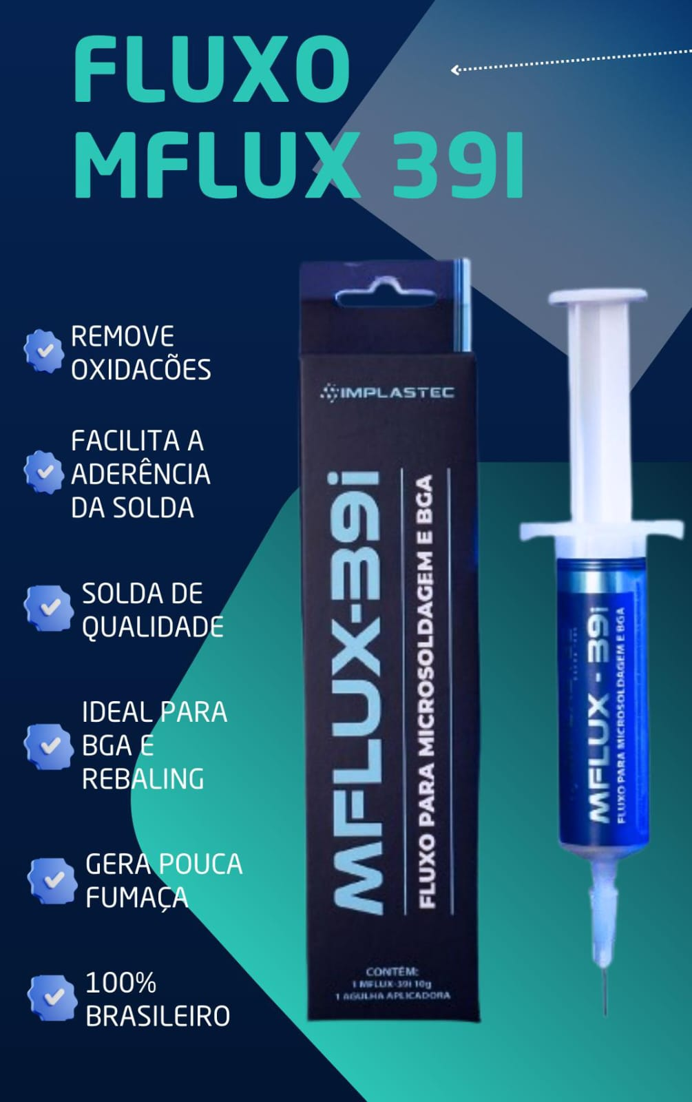 O Fluxo M-39i desenvolvido para os processos de soldagem de microcomponentes eletrônicos, por meio da tecnologia SMD (Surface Mount Device) e para a realização de reballings BGA em chipsets