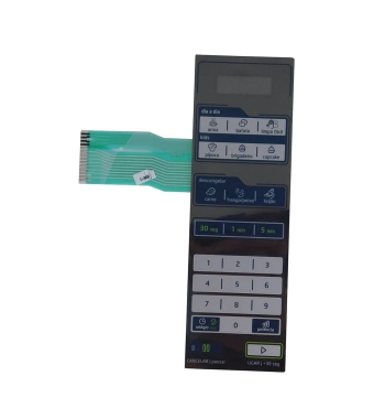 Teclado de membrana para conserto dos fornos microondas Midea modelos MTFE21, MTFE22, MTRS21 e MTRS22.