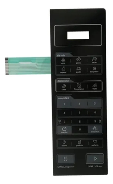 Teclado de membrana para conserto dos fornos microondas Midea modelos MXSA35P1 e MXSA35P2.