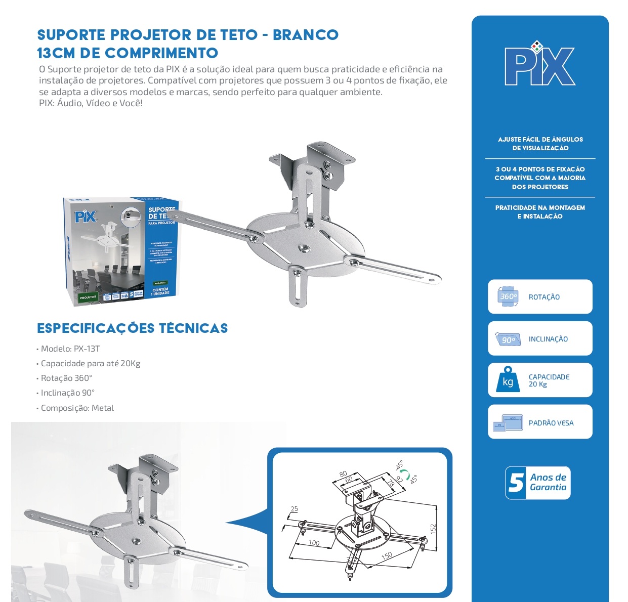 Suporte de Teto Para Projetor Rebaixa 13cm