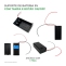 Você encaixa a bateria neste suporte, fecha a tampa e tem 2 fios para ligar no seu projeto.