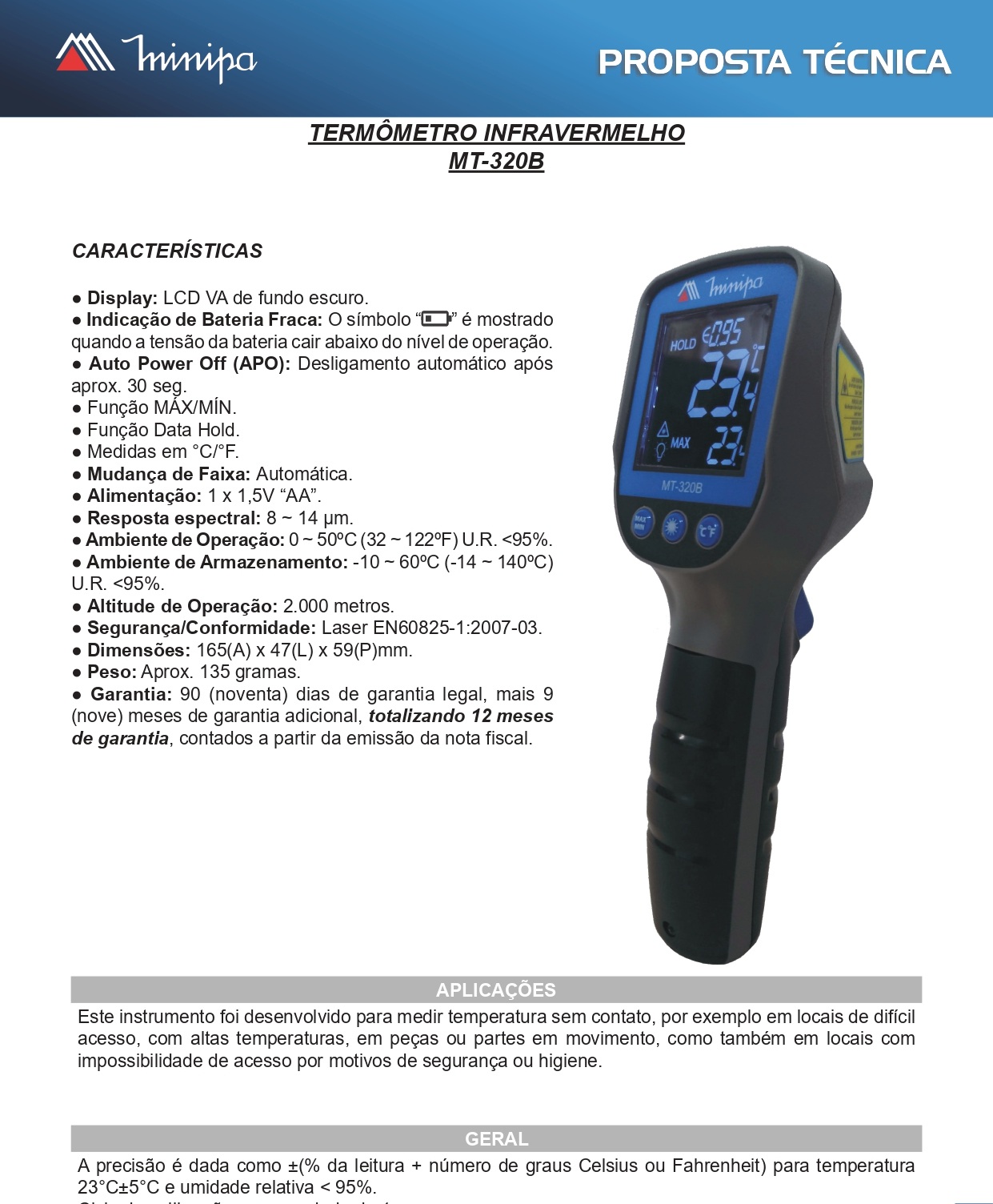 Faixa de Emissividade: Ajustável de 0,10 a 1,00